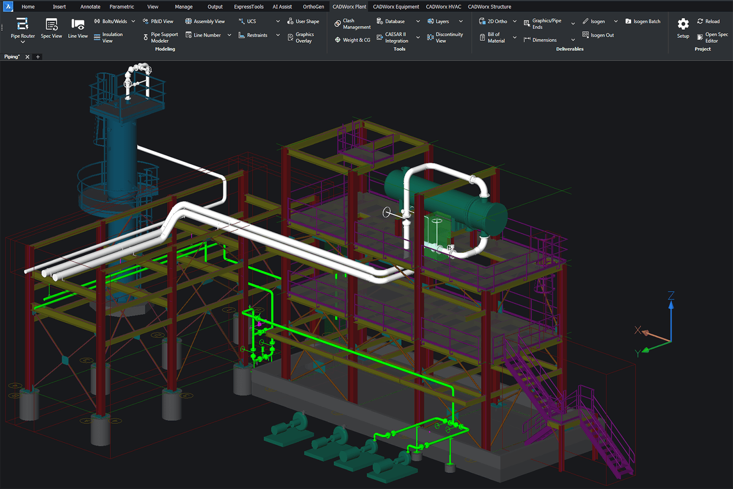 CADWorx Plant Professional radi na platformi BricsCAD ili AutoCAD, pružajući kompletan paket sa moćnim i prilagodljivim alatima koji omogućuju brzu i jednostavnu izradu potpuno inteligentnih 3D modela procesnih, energetskih i drugih postrojenja.